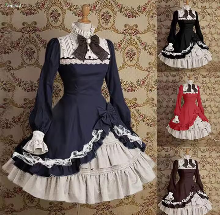 和風ロリータドレスは、その独自のデザインが魅力のアイテムで、特別な日のお出かけやイベントにぴったりのコーディネートを提供します!落ち着いたブラウン、エレガントな黒、鮮やかな紺、そして華やかな赤の4色展開で、どれも可愛さと大人っぽさを兼ね備えた一品です。